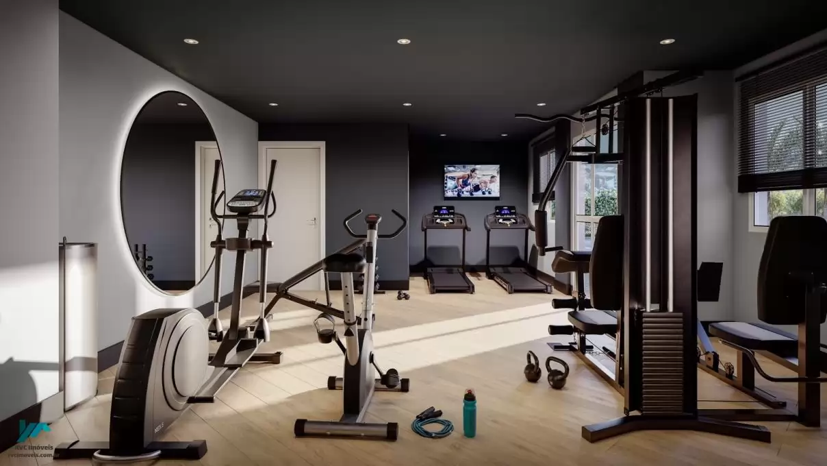 Academia: Equipamentos modernos para a prática de atividades físicas.