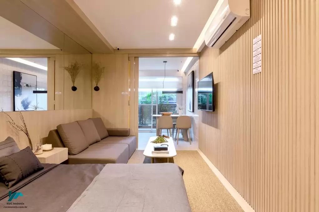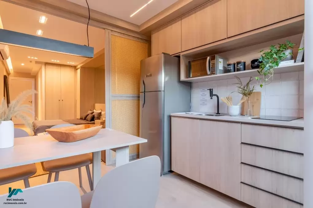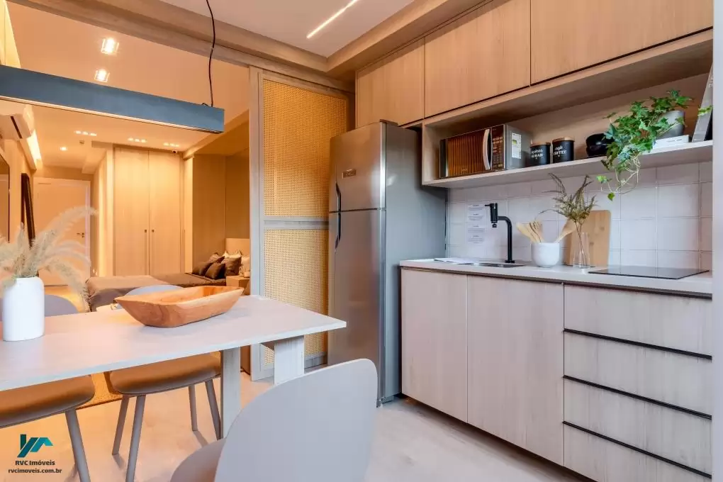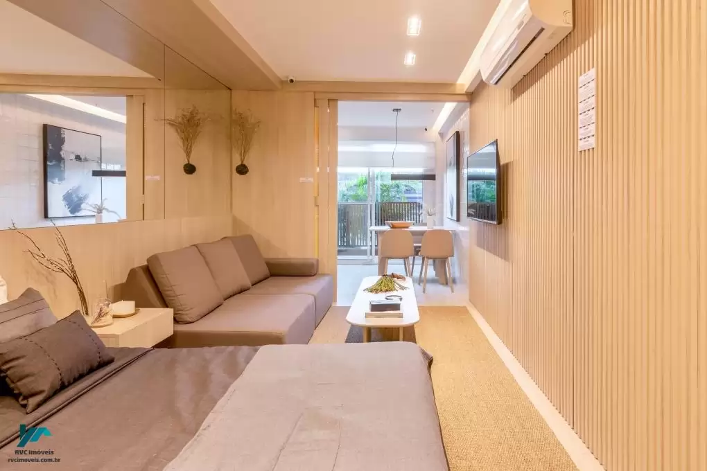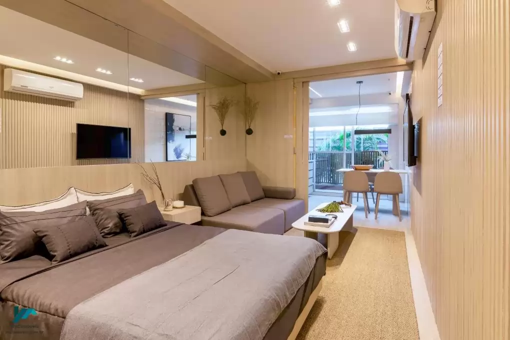 Tipologias: Studios, apartamentos de 1 e 2 quartos, todos com varanda, projetados para oferecer conforto e funcionalidade aos moradores.